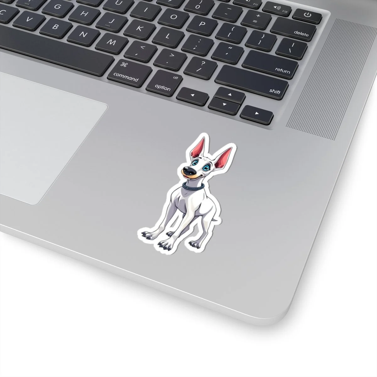Bright, glossy kiss-cut stickers showcasing a playful white dog illustration — cheerful, clean, and made to stick around. The vibrant eco-solvent inks bring out crisp whites, soft shading, and the pop of pink in the ears and blue eyes. These vinyl stickers cling smoothly to laptops, journals, water bottle lids, and other flat surfaces, applying bubble-free for an instant personality boost. Choose transparent or white backing and from four sizes to match the spot you want to brighten. They’re crafted from durable vinyl with a strong permanent adhesive for long-lasting indoor display and printed from high-quality blanks sourced from Japan.